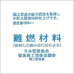壁紙の防火性能は、下地基材と壁紙の張り合わせにより、不燃・準不燃・難燃の3種類に分かれます。ラベルを受給するためには組合が主催する防火壁装施工管理者講習会を受講して、「防火壁装施工管理者」としての登録が必要になります。